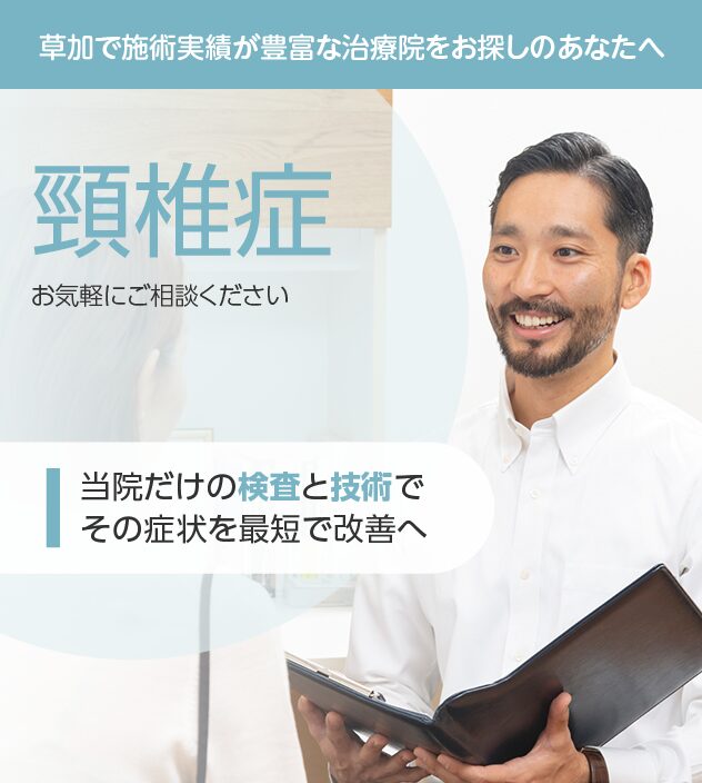 病院やほかの治療院で改善しなかったとしても諦める必要はありません。頸椎症は豊富な施術実績を誇る当院にお任せください。