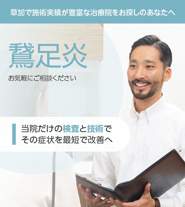 通いやすさも改善のためには重要なポイントです。草加駅から徒歩3分、女性スタッフも常駐しており、女性やお子さま連れも安心してお越しいただけます。最終受付は20時、土曜日も開院しております。完全予約制のため、お待たせすることもありません。